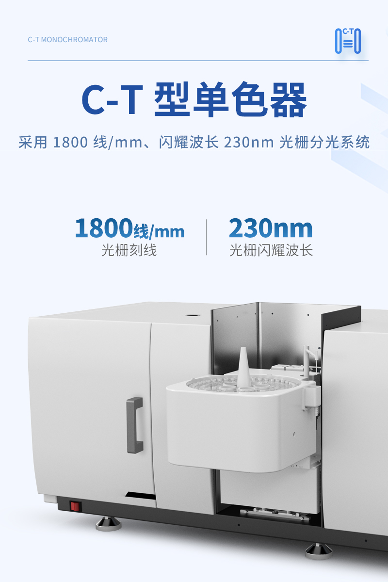 元素燈和氘燈雙重切換和背景扣除,具備氘燈與自吸收兩種背景校正模式,背景信號 1A 時,扣背景能力 50 倍以上。